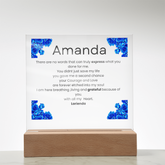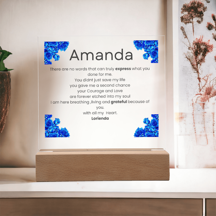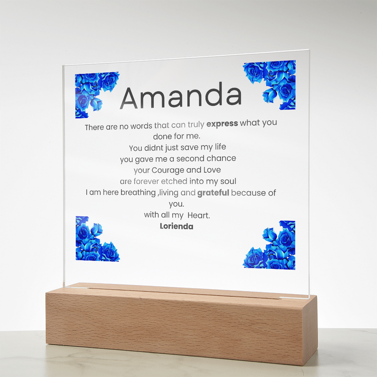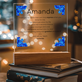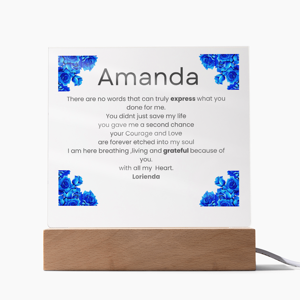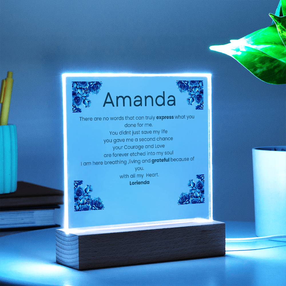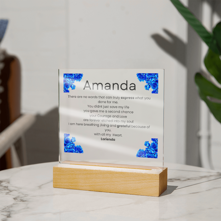 Your plaque will be crafted from premium acrylic with a professionally printed design for a polished look. It comes with a stylish wooden LED base, and you can choose between a USB plug-in option OR a cordless battery-operated option (requires 2 AAA batteries, not included). Both LED bases feature 7 vibrant colors, allowing the user to customize the lighting with various color changes and dynamic cycles.
